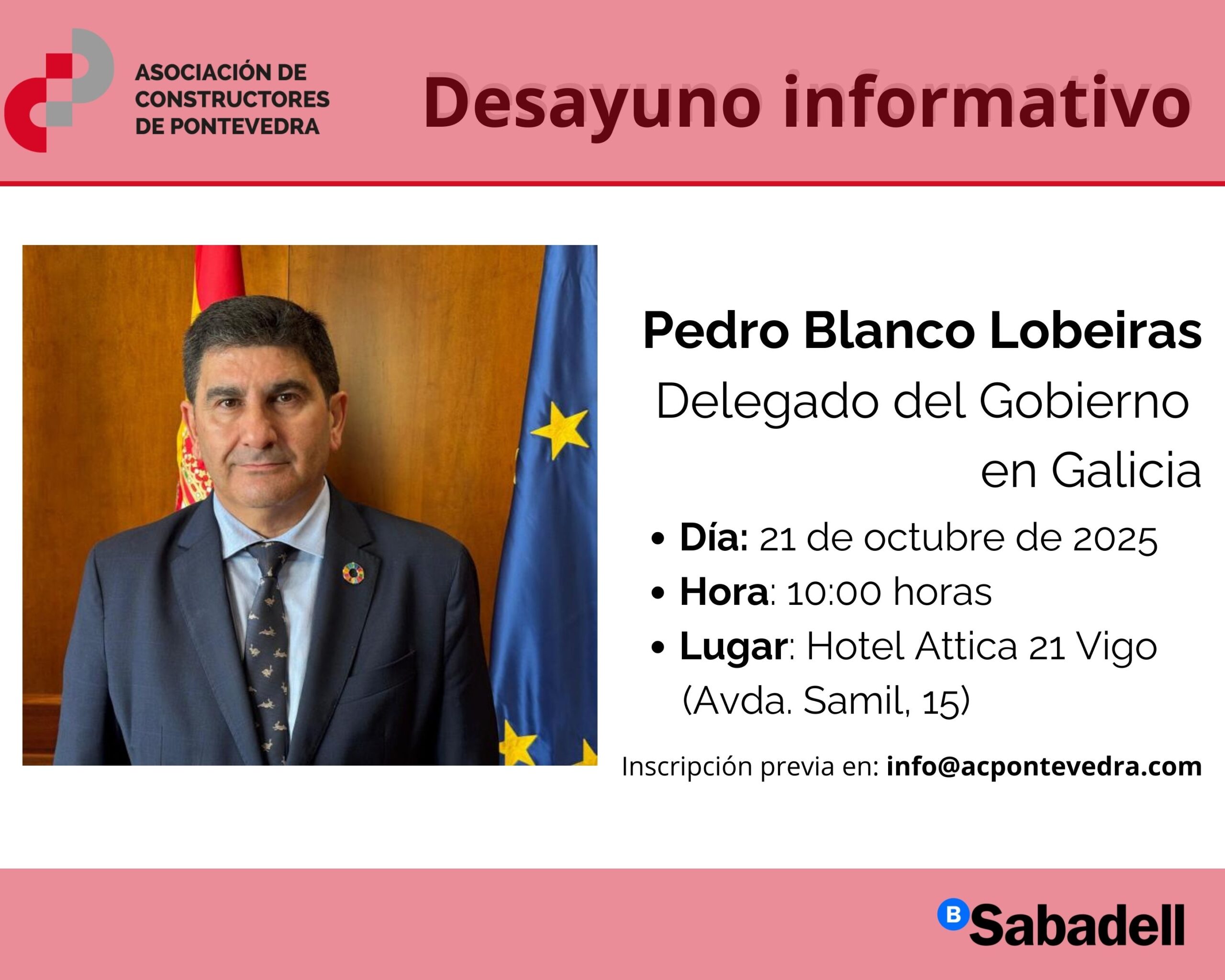 Vigo, 26 de septiembre de 2025.- La Asociación de Constructores de Pontevedra (ACP) recibe en sus desayunos informativos, organizados en