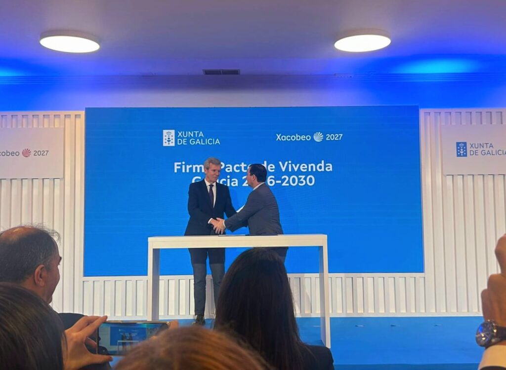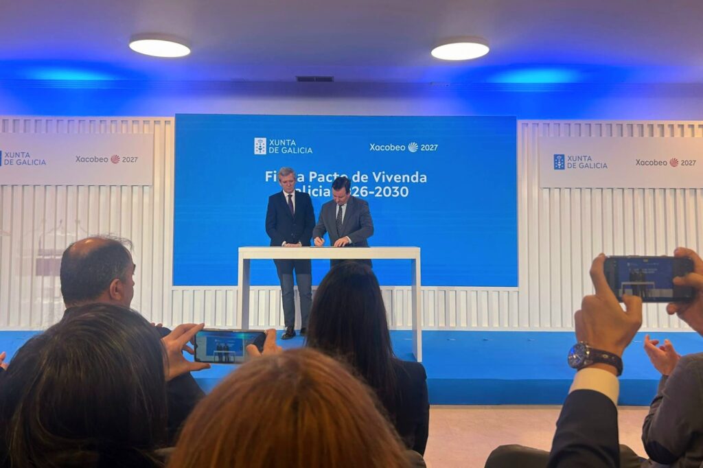 - El presidente de la Xunta, Alfonso Rueda, presidió el acto, y resaltó que el nuevo Pacto nace del “consenso con el sector” en el marco del Observatorio da Vivenda.